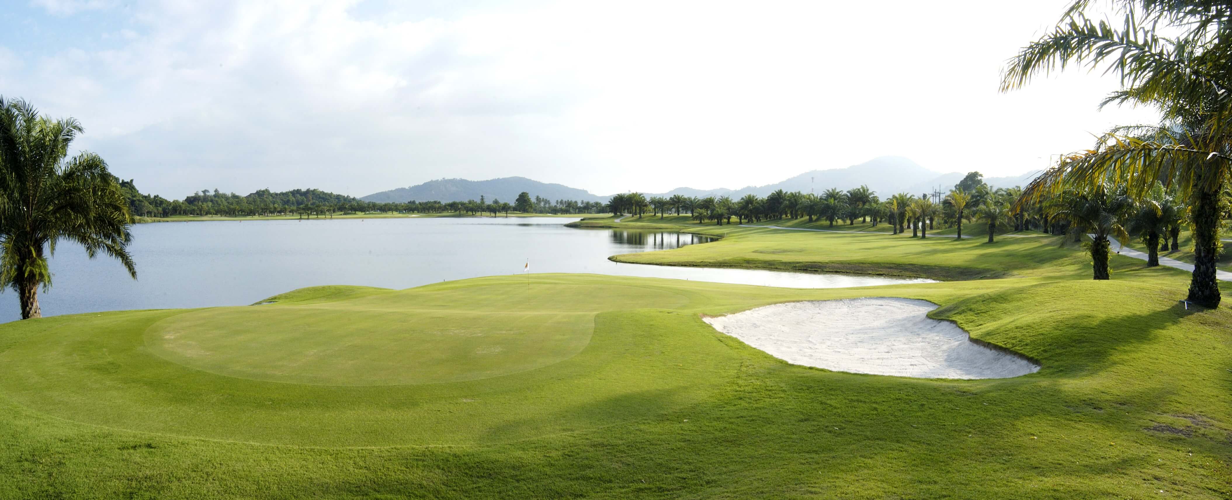 สนามกอล์ฟล็อค ปาล์มที่เปี่ยมสเน่ห์อันงดงามและเลื่องชื่อ เหมาะสำหรับทั้งผู้เริ่มต้นเล่นกอล์ฟ ระดับกลาง และมืออาชีพ ในช่วง 9 หลุมแรก นักกอล์ฟจะได้สัมผัสกับบรรยากาศการตีกอล์ฟเลย์เอาท์อุปสรรคที่โอบล้อมไปด้วยแนวทะเลสาบ ซึ่งนับเป็นจุดเด่นของสนามนี้ ก่อนที่จะฝ่าความท้าทายของ 9 หลุมหลังในส่วนพื้นที่ที่เป็นภูเขา ด้วยแฟร์เวย์ที่เรียงรายไปด้วยต้นปาล์มกว่า 1,500 ต้น ประกอบกับสายลมเย็นที่พัดผ่านทะเลสาบ ทำให้สนามกอล์ฟแห่งนี้มีสภาพแวดล้อมที่สวยงาม เงียบสงบและสดชื่นอย่างแท้จริง